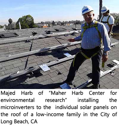 Human needs and aspirations are identical, no matter how we look, or where we come from. Indeed, the human essence is the same in spite of the aesthetic appearances. And, throughout this world, people and NGO's are competing to do good things for humanity on a daily basis. One of these NGO's is 'Grid Alternatives', a non-profit organization that operates in California, USA and expanding to other states and countries. It has been installing complete PV system to low-income families at no cost, using volunteers to do the work. Last year,' Maher Harb Center for Environmental research' in the capacity of its director participated in this effort by volunteering in the installation of few PV systems in the City of Long Beach, CA Of course, the best part of this whole volunteering operation is the smile that you put as a volunteer on the faces of the members of these low-income families when they realize that this new PV system that they have on their roofs will make their monthly electric bill almost zero, thanks to the net metering effect